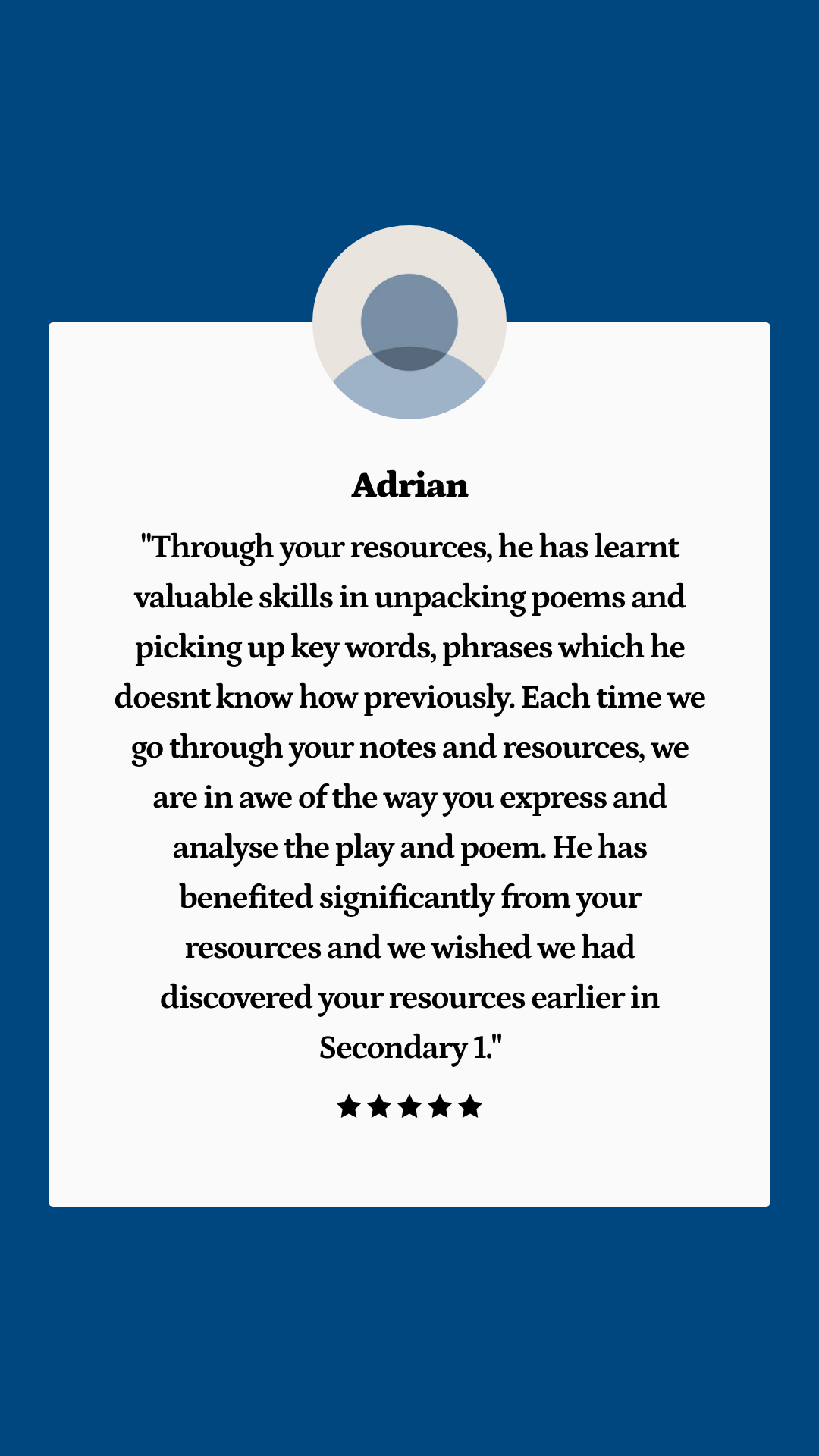 🎯 If your child's set text is different from the list below: Your child can still send me their set text's Passage-based Qn for personalised marking. Note that I'm not able to provide notes on their set text, but I can provide detailed feedback. Kindly select the last "Poetry" icon below.
