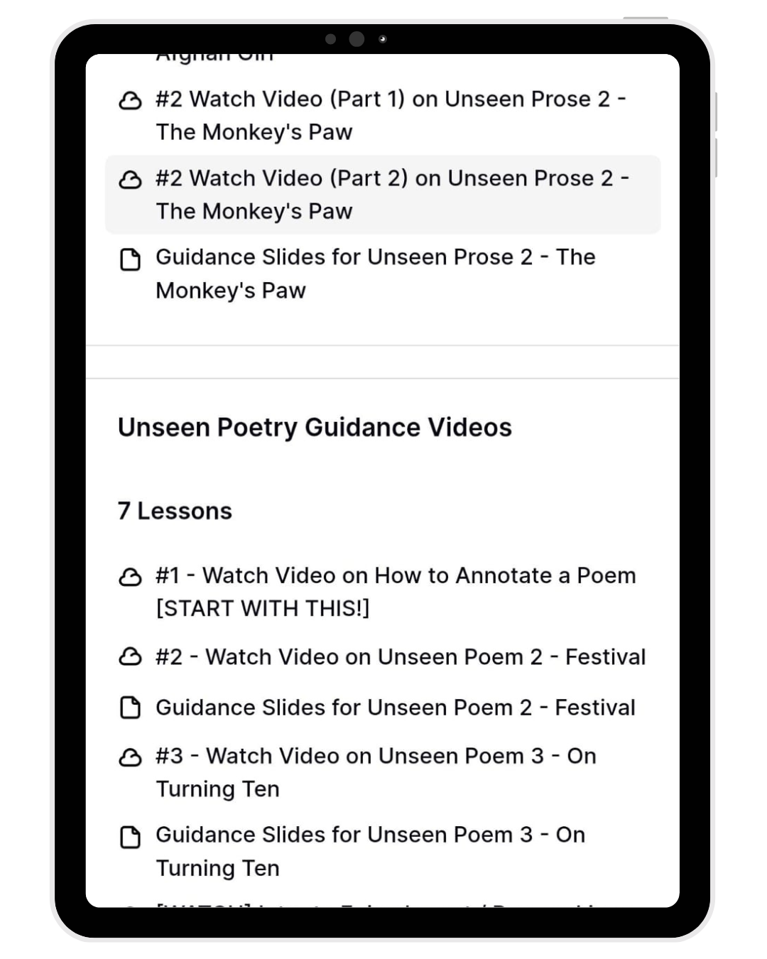 Before you decide, see exactly how your child will learn inside the Unseen Texts Mastery Package.